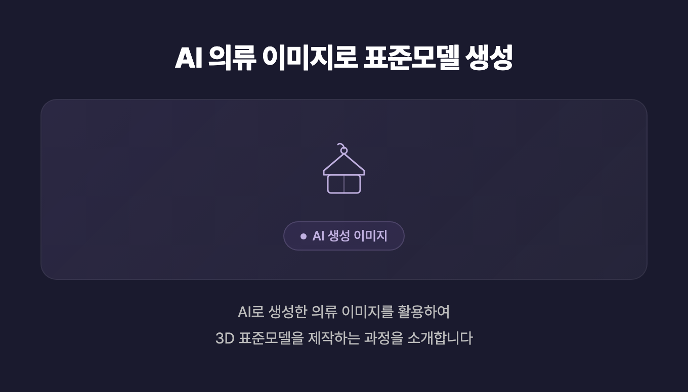 AI가 생성한 의류 이미지로 3D 표준모델을 만드는 새로운 프로세스를 설계했습니다.