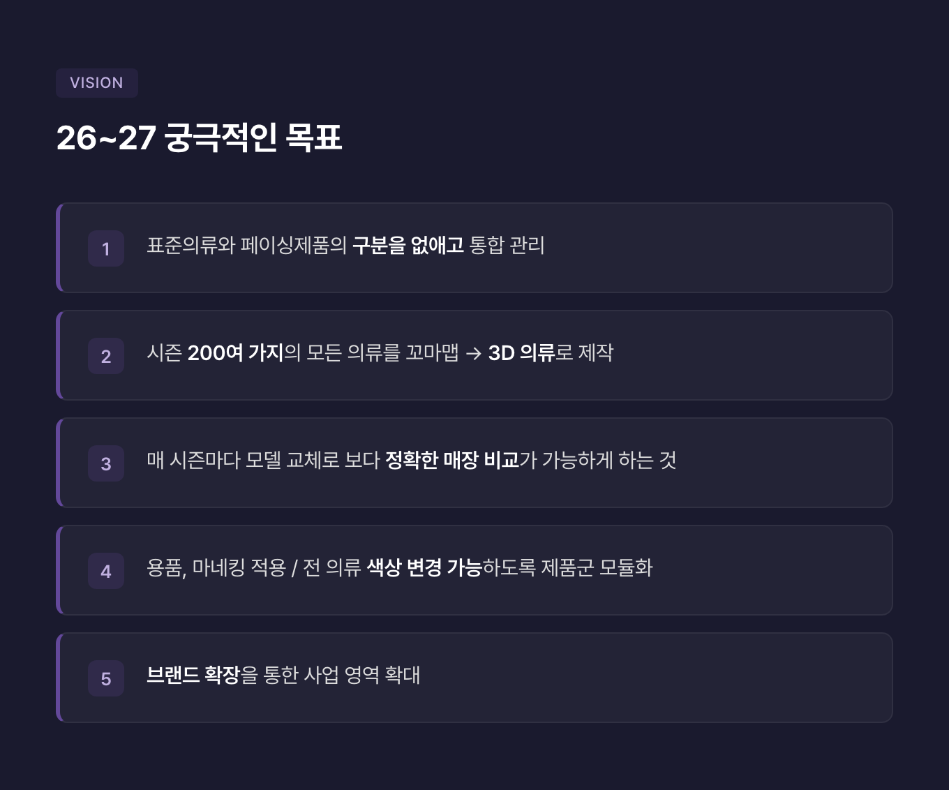 - 시즌 200여 가지의 모든 의류를 꼬마맵 → 3D 의류로 제작