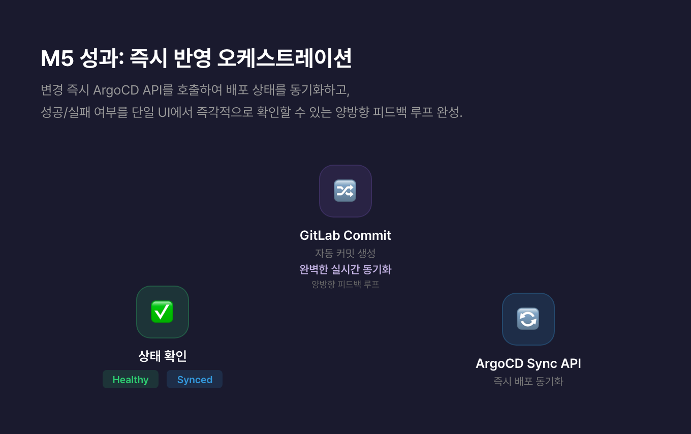 변경되는 즉시 ArgoCD API를 호출해 배포를 동기화하고, 성공인지 실패인지를 같은 화면에서 바로 확인할 수 있습니다.