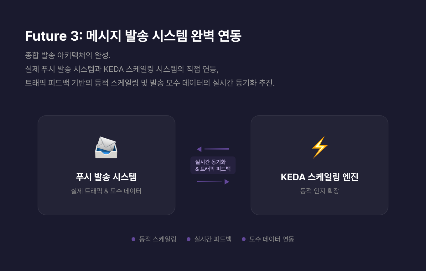실제 푸시 발송 시스템과 KEDA 스케일링을 직접 연결하고, 트래픽 피드백으로 동적 스케일링하는 것이 다음 목표입니다.